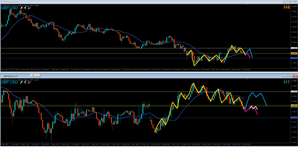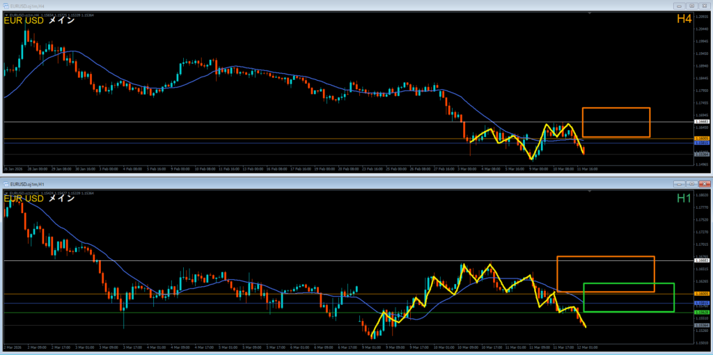 4時間1っ波狙いっぽい1時間戻り売りも積極的に狙っていきたい。