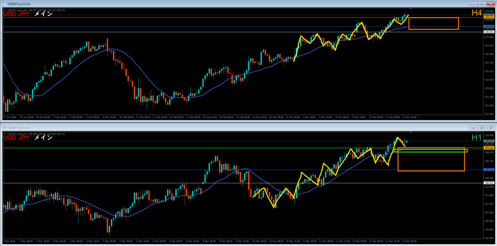 ●エントリ足 4時間軸足⇔1時間