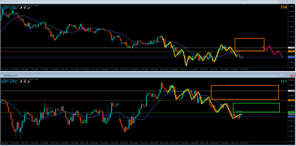 4時間足 方向 下