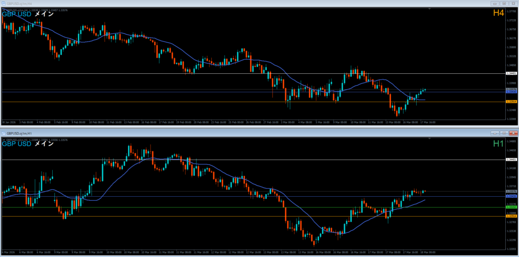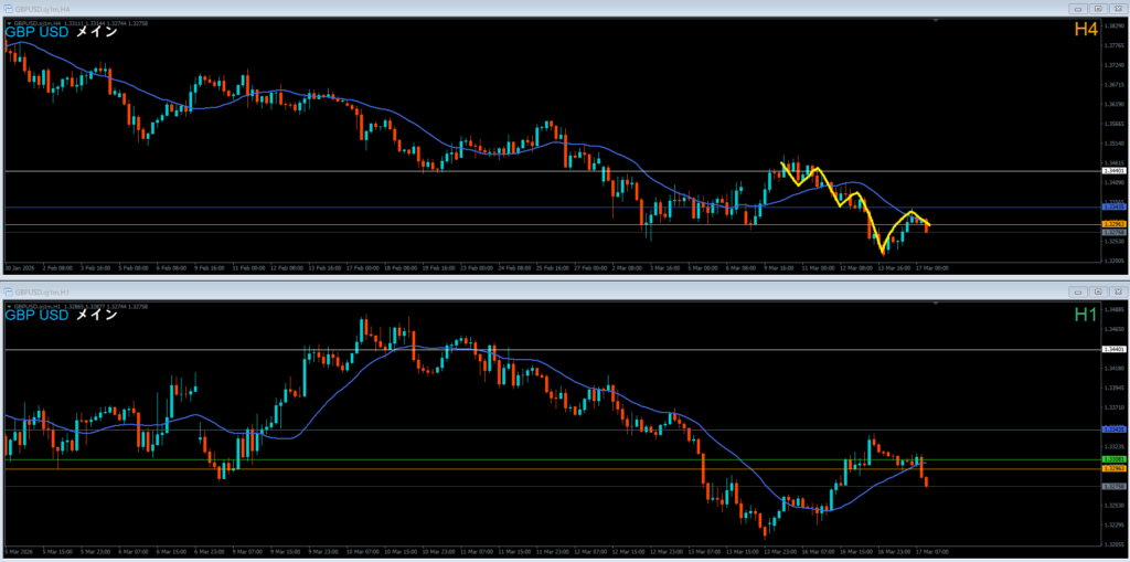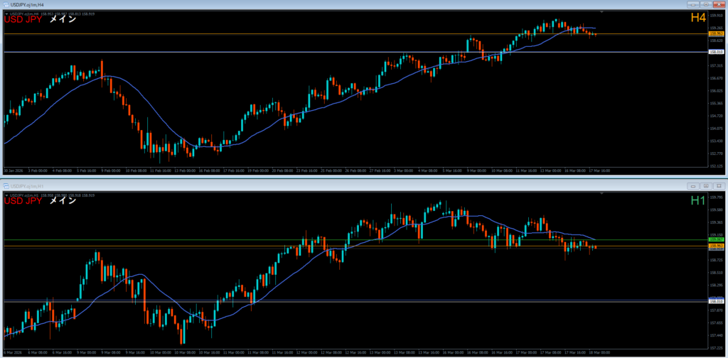 セオリーとしてはこの4時間戻り売りを待つイメージ。