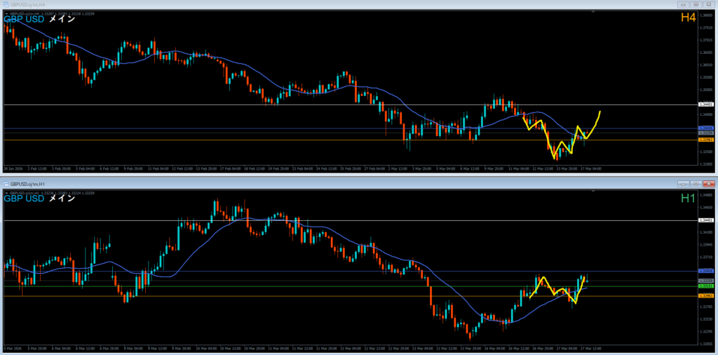 戻り売りは4時間足のレジスタンスラインが機能していくか見ていく。