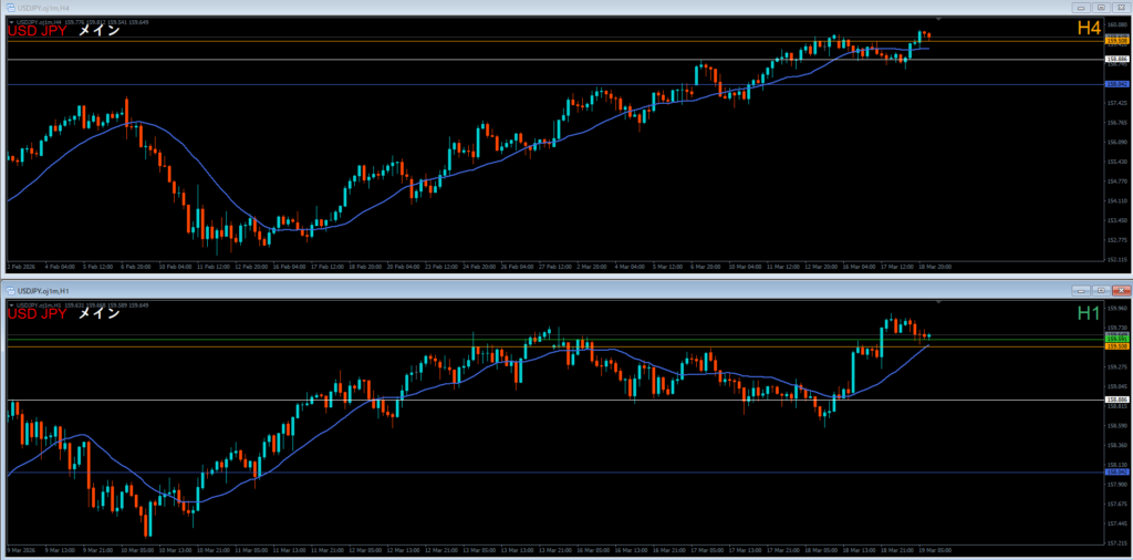 ●エントリ足 4時間軸足⇔1時間