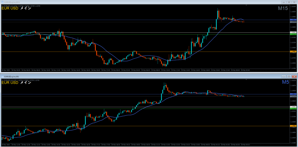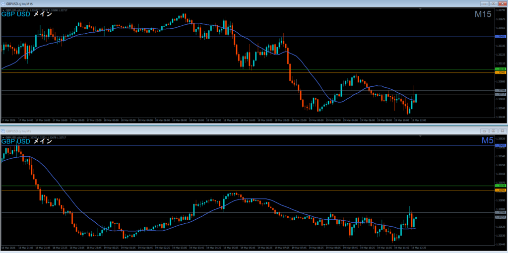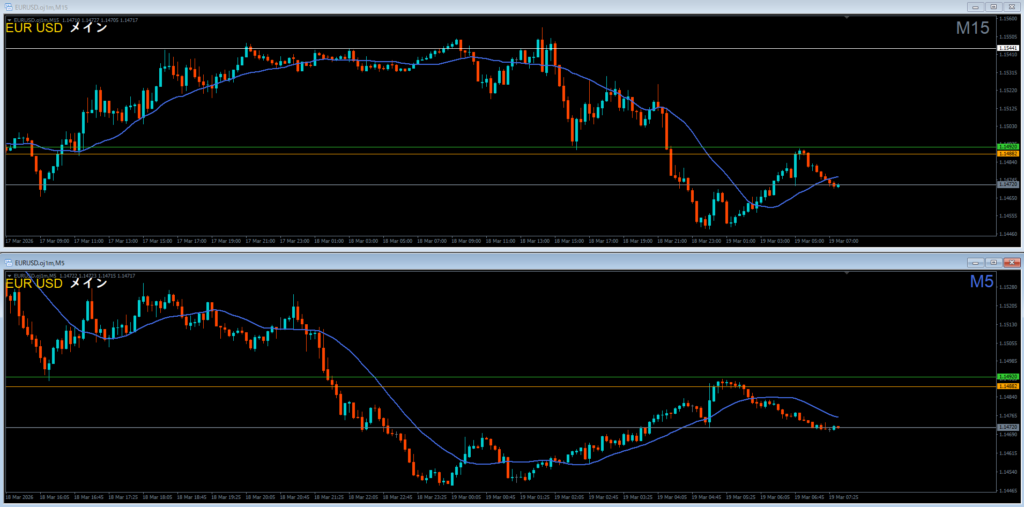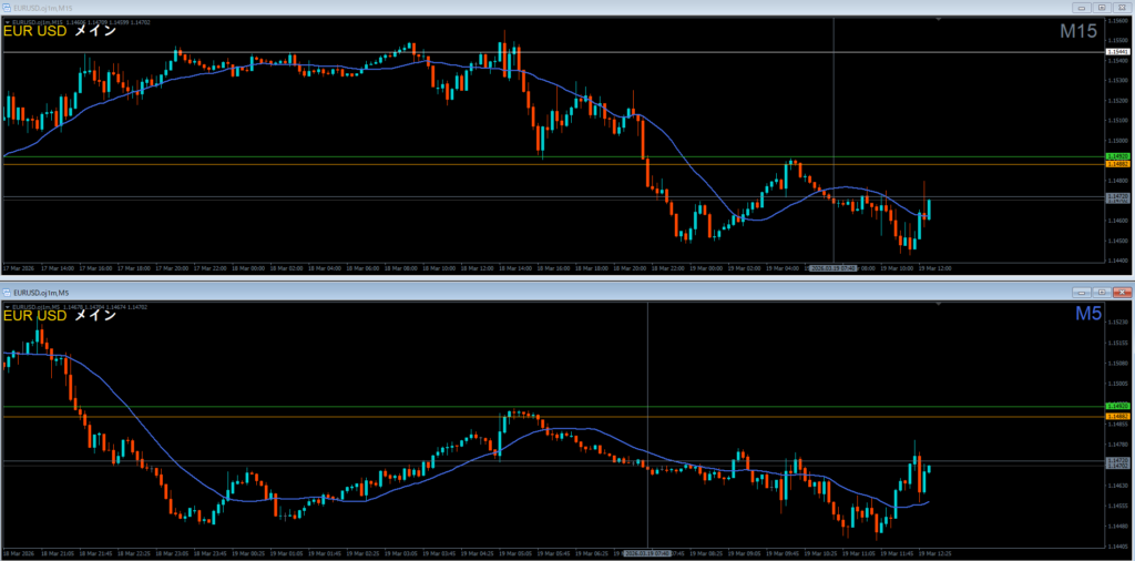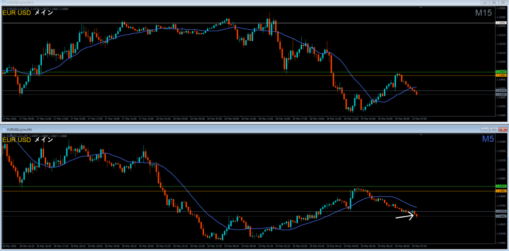 日足の波狙いなら1時間足が基本で、15分足は難易度が高い。