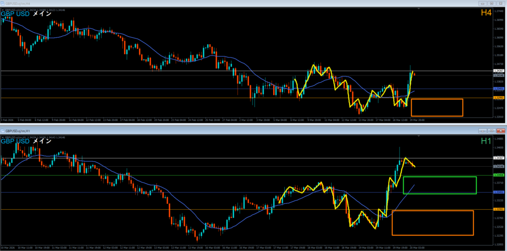 ●エントリ足 4時間軸足⇔1時間