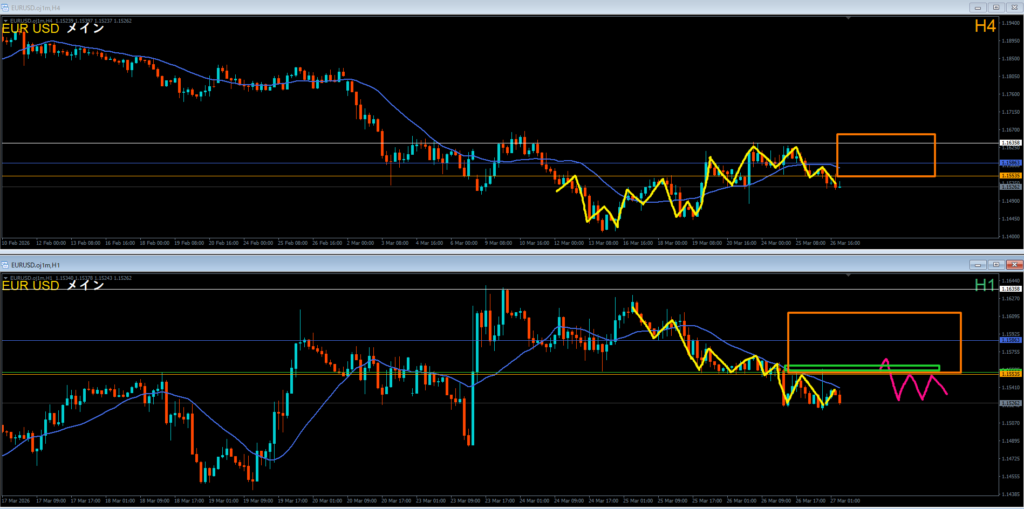 オレンジ色の4時間サポートラインの下には押し目買い勢力がいる。