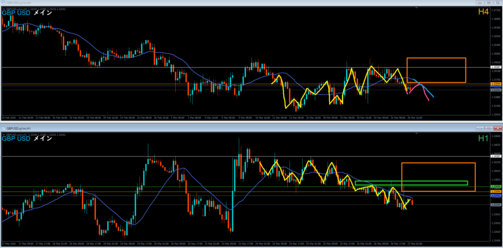 直近波が小さいのでもしかしたら4時間戻り売り入るかも…