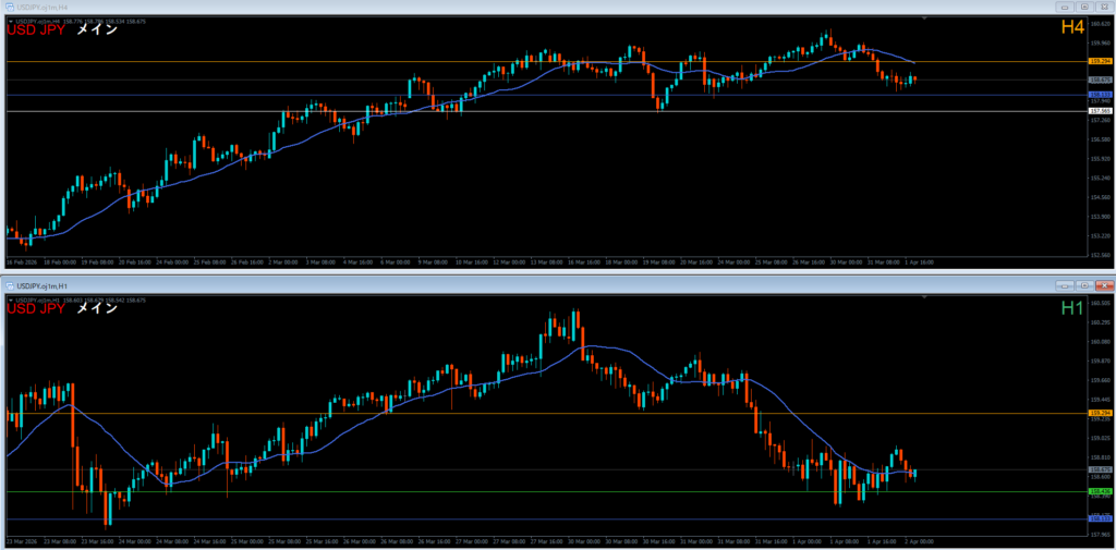 戻り売りは狙わない。4時間軸足で見ていく。