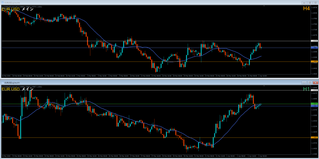 ●エントリ足 4時間軸足⇔1時間
