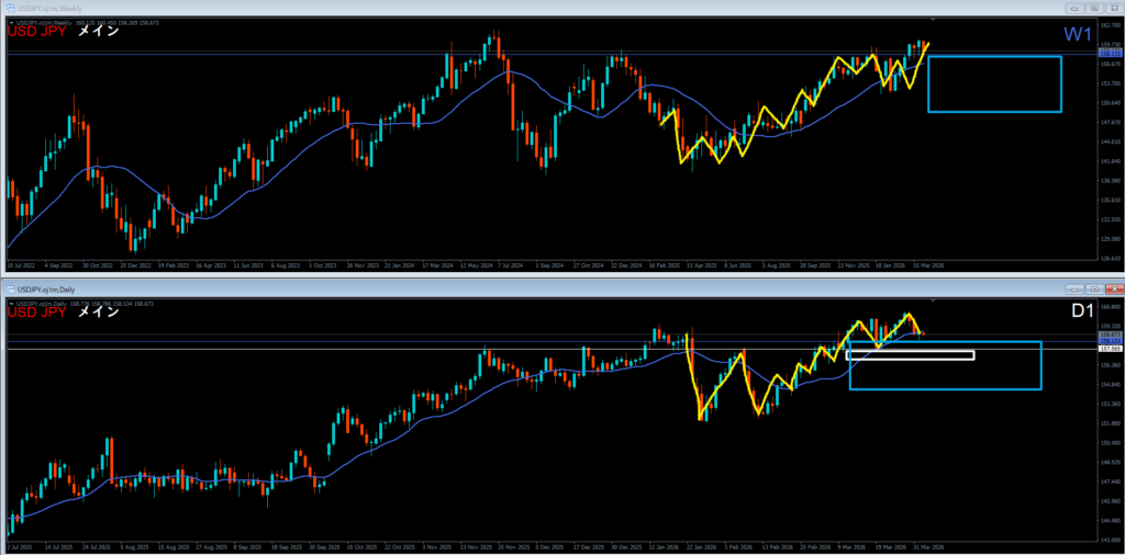 日足は高値を超えて上昇もしくは超えず。