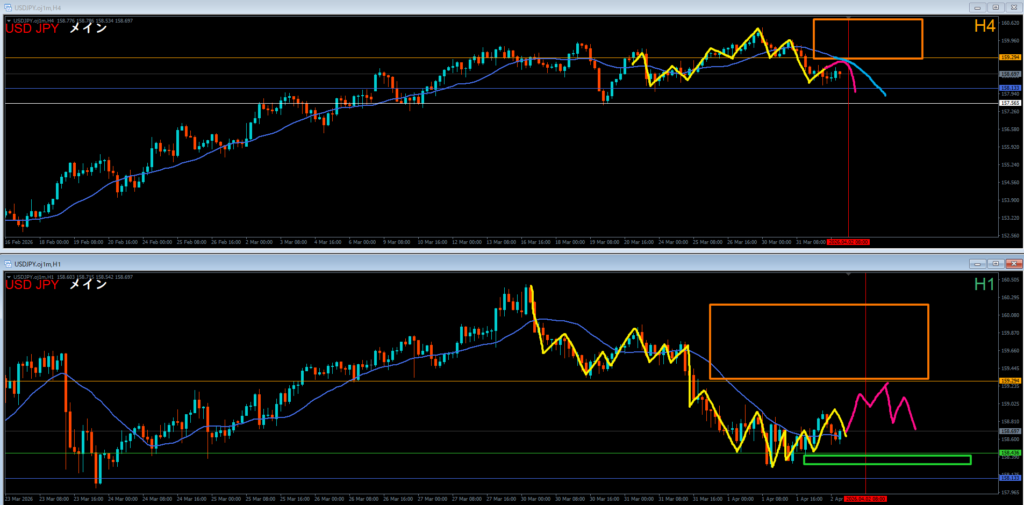 4時間足 方向 下