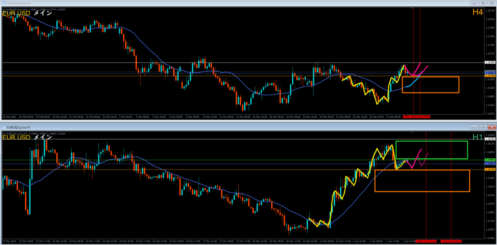 ●エントリ足 4時間軸足⇔1時間