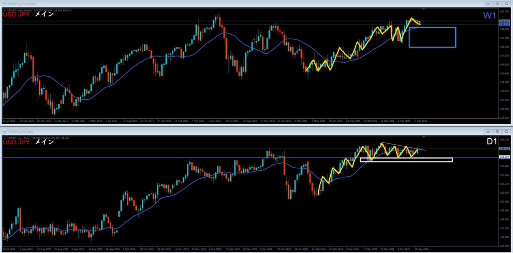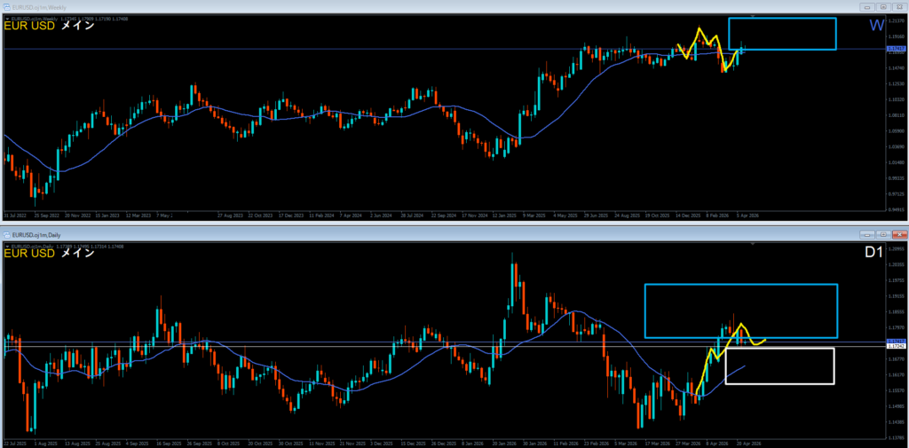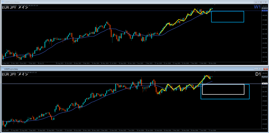 週足は高値を超えて上昇。そこから押して確認しているエリア。