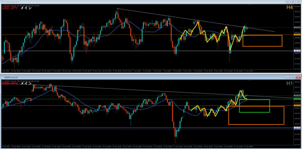 いつもより小さい波で4時間押し目買いが入ってくるかもだが、