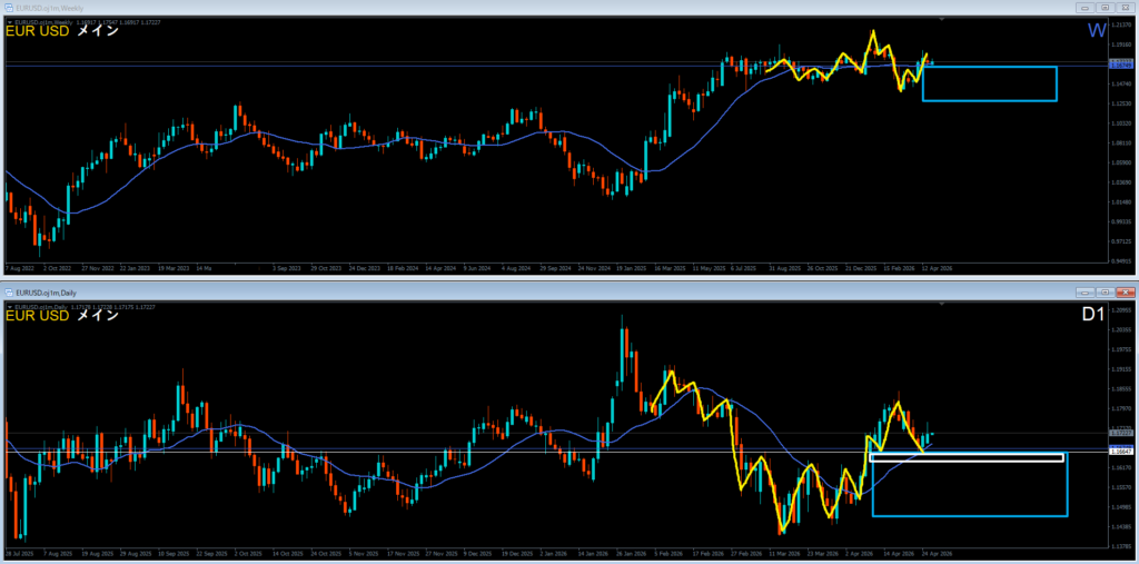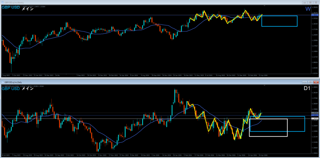 ユロドルと違ってこちらは日足押し目買いエリア
