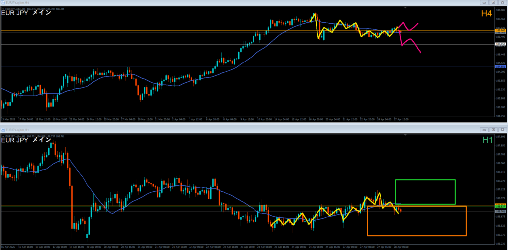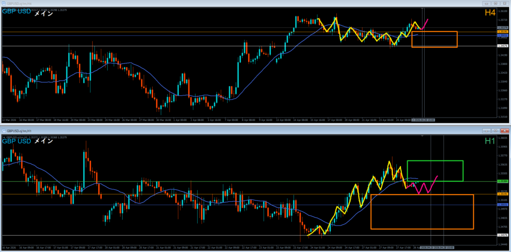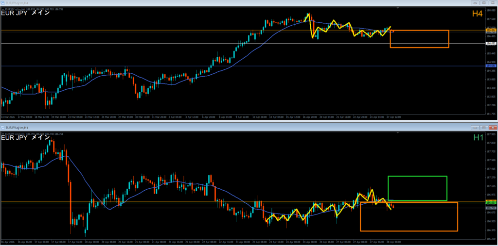 ●エントリ足 4時間軸足⇔1時間